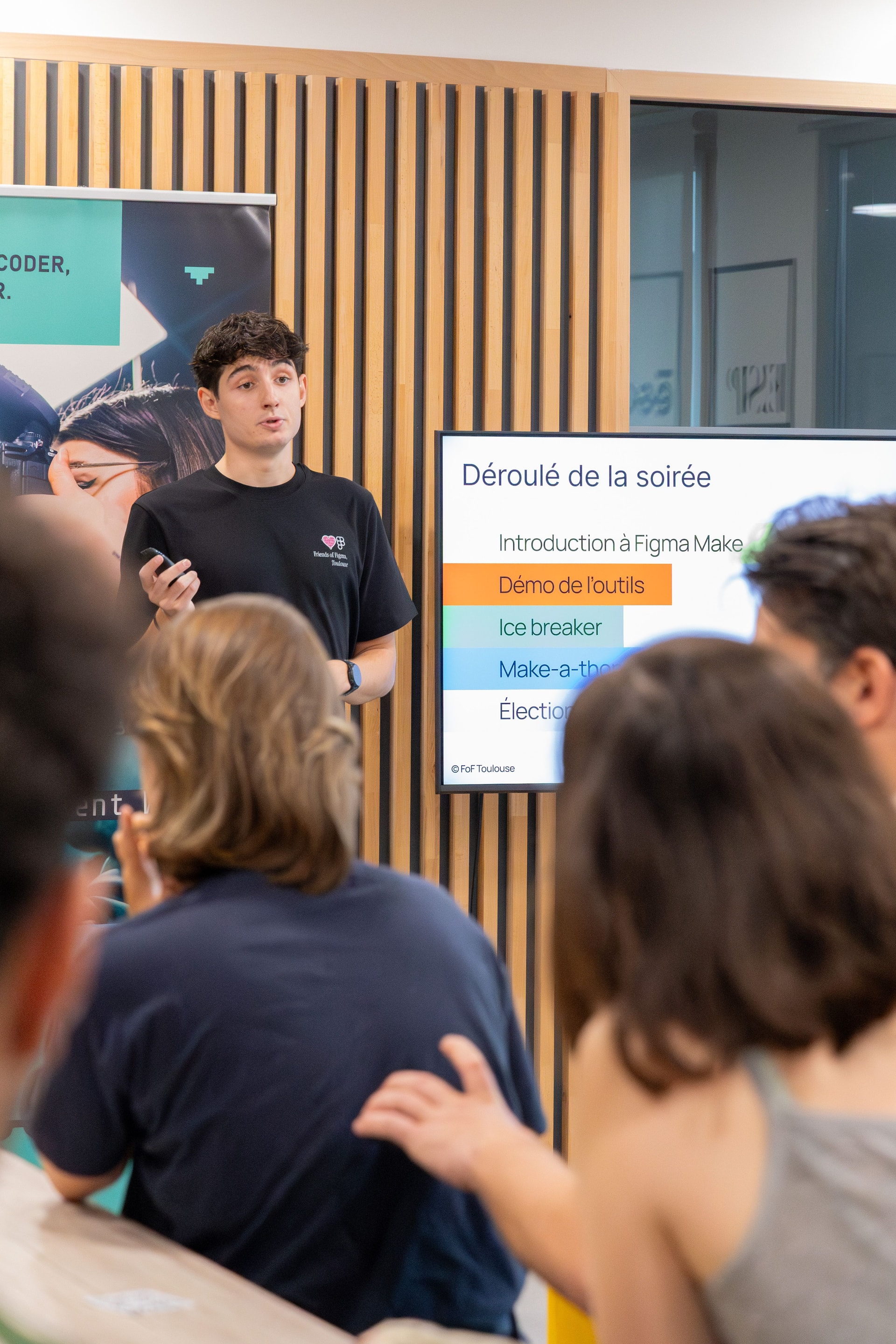 Jeudi 16 octobre, les locaux de l’École Supérieure du Digital de Toulouse ont pris des airs de studio créatif géant à l’occasion de la soirée Friends & Figma animée par Hugo Terrinha, un alumni de l’école. Après une première édition en juillet, le rendez-vous faisait son grand retour, rassemblant étudiants, designers et curieux autour d’un sujet brûlant : l’intelligence artificielle appliquée au design.